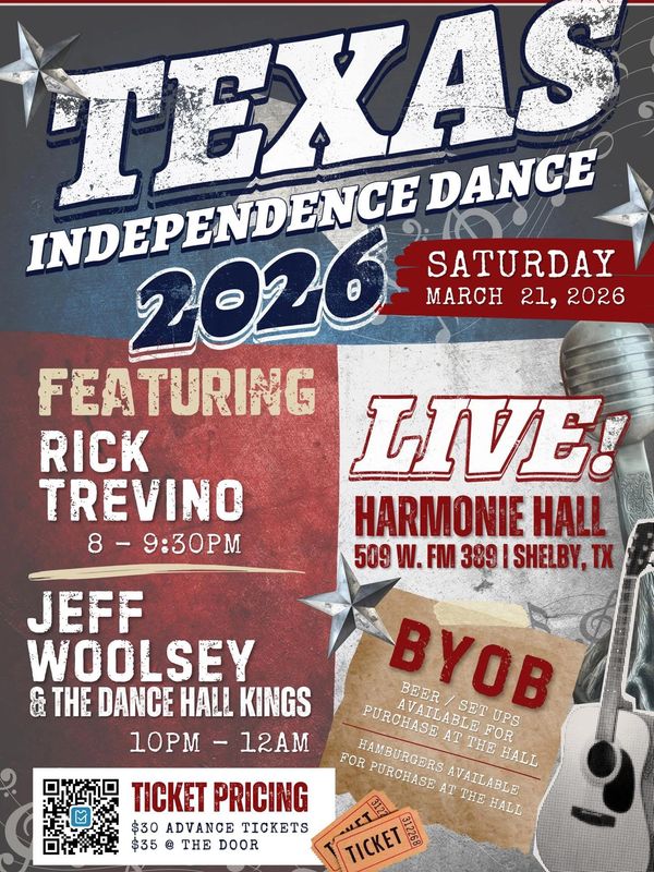 COMING IN MARCH - the 2026 TEXAS INDEPENDENCE DANCE featuring JEFF WOOLSEY and RICK TREVINO!