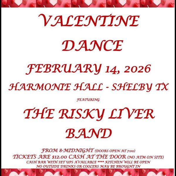 Bring your sweetheart (or come here to find one), and THE RISKY LIVER BAND will bring the music. Dancing from 8:00 to midnight.